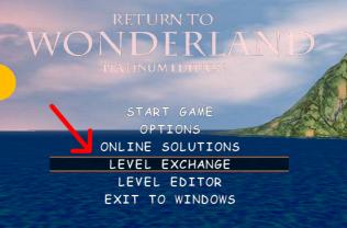 From time to time we get an e-mail from somebody who's played the game for some time, yet never realized that there's a such a thing as a level exchange and discussion board for the Wonderland game series. In case you're one of them, here's how to log on. From the Return To Wonderland splash screen or main menu, select "Level Exchange". Once at the level exchange, register for your free account (you need a valid e-mail address) and read the forum rules. Then join the discussion, download the latest levels, or share your own creations with the community.