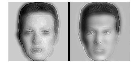For the Dr. Angry and Mr. Calm illusion, centre the following image on your screen, then walk away from the computer. Look at the monitor from about 3-5 metres distance. Make a note of who's angry, and who's calm. Keeping your eye fixed on the images, walk slowly toward the monitor for a very interesting effect.