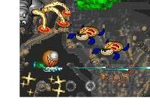 The game demo includes five enemy designs, the crab-like hunter, the spiky sharp-shot, the splitter, the radar-jammer (very dangerous!) and the lumbering city bombers. There are also two test backgrounds - you can switch between them by using the F1 and F2 keys.