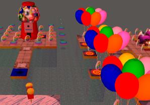 Another newsletter, another wonderful set of custom levels to spotlight for you. Last month the community held a competition to create levels specifically for kids. The result is a colourful blast of bouncing trampolines, wacky visuals, and tons of fun. You can download the entire set of entries right here. Unzip the contents of this file into your Return To Wonderland Platinum directory - it will automatically create subfolders for the custom levels, 3d models, and custom graphics. Congratulations to all participants, but especially to community member "Lillian" for her winning entry, #G (with 3D models by "popo").