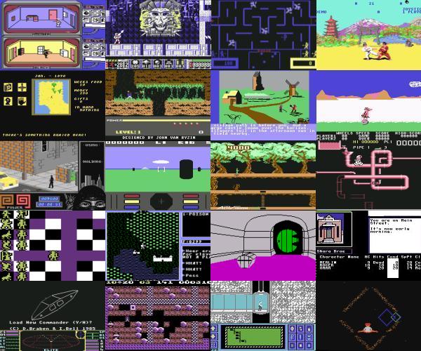Below are twenty mini-screenshots from twenty Commodore 64 games. How many games can you recognize? Lists your answers, that is, the game from which each screenshot is taken, by row (from left to right) numbered #1-#20.