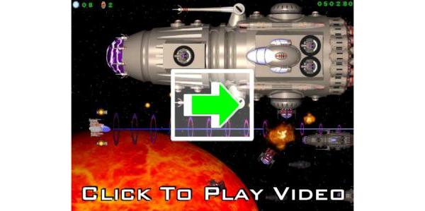 For the visuals, we employed the 3d ray-tracing program “POV Ray” to construct and render the ship graphics in 3d, then transfer the output to a traditional 2d “sprite” system. Music was provided by the electronica band “ReFraction”, chopped into processor-friendly little chunks, and then streamed into the audio buffer during the game. Finally, since this was our first title specifically developed with a web-based distribution system in mind, we also incorporated several special demo features, such as a “trailer” that showed clips from the full game (a technique that is now commonplace).