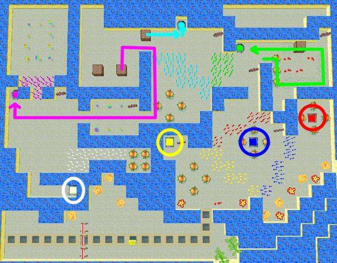 Different colours of seaweed can be removed by stepping on the button of corresponding colour. Step on the yellow, blue, and red button and collect the nearby Krabby Patties. Notice that square buttons stay on once pressed.