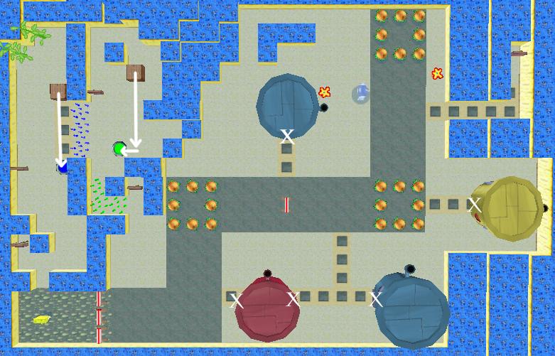 Often additional Bonus Bubbles are hidden inside houses - in this case there are five bubbles hidden at the positions marked with an "X".