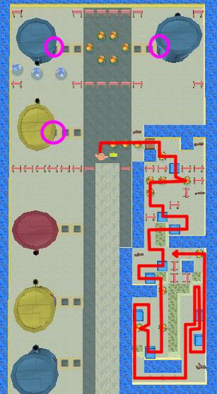 First, move Patrick along the red path to build bridges (two steel boxes pushed into the same hole will create a bridge to walk on) and collect Krabby Patties. Then switch to SpongeBob. Before collecting the group of patties that are guarded by the Bullies, you can find and collect three Bonus Bubbles inside the houses (circled).