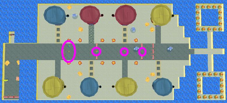 You need to get either Patrick or SpongeBob across the street, avoiding the Bullies, to collect the Krabby Patties on the other side. If you feel daring, you can also try to collect the six Bonus Bubbles (circled) along the way.