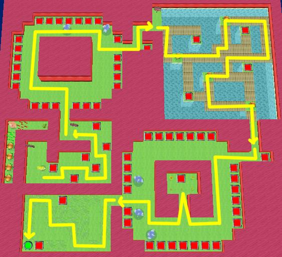 Patrick is being protected by a red seaweed gate, so it is your task to prevent that any red buttons are pressed. Follow the yellow path through each section. Make sure that, before you move, no Bully will see you, or else the charging Bully will end up stepping on a red button.