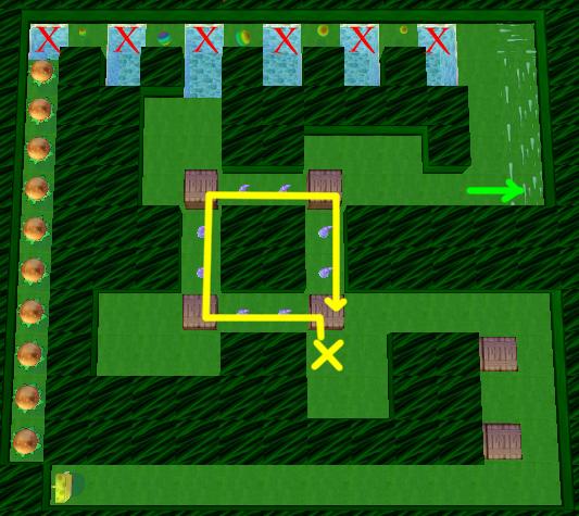 Once a box is pushed into the current, follow it to build a bridge at the red "X"s. Make sure to collect the Bonus Bubble before bringing the next box, or your progress will be halted.