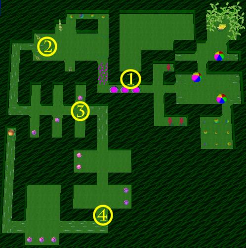 At the purple buttons ("1") wait for the fish to depress the buttons before moving on. Wait at positions "2" and "4" until the Jellyfish passes before entering the currents. Position "3" requires very good timing. As soon as the Jelly passes (start running while it is still almost in front of you) enter the current and move quickly passed the next Jellyfish pair.